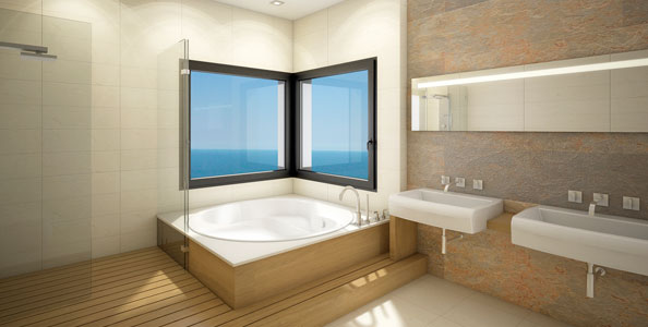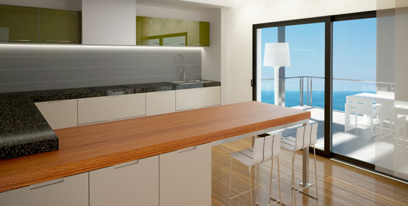 Bereits der Eingangsbereich der Villa erlaubt einen herrlichen Blick auf das Meer. Bei der Aufteilung der Innenräume wurde Wert darauf gelegt, eine Einheit mit den Außenanlagen der Villa zu schaffen. Erreicht wurde dies dank großzügiger Fenster, von denen die zweistöckige Fensterfront von 6 Quadratmetern das Herz der Villa darstellt.