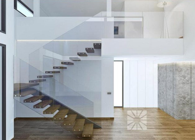 Das Objekt ist in zwei Etagen aufgeteilt. Im Erdgeschoss befinden sich eine ca. 80 m² große Garage mit Kapazität für 3-4 Fahrzeuge, eine geräumige Design-Küche mit spektakulärer Kochinsel, zum Essraum hin offen und direkt mit der Veranda und dem Grillbereich verbunden. Dazu gehören außerdem eine Speisekammer, eine Toilette und ein Gästebad. Der zentrale Raum dieser Etage ist das Hauptwohnzimmer mit einer eindrucksvollen Decke von 6 Metern Höhe und Glaswänden, durch die man das Licht, die Sonne und den Meerblick dieses fantastischen Chalets genießen kann.